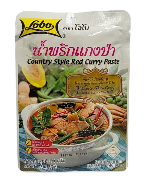 Country style curry to potrawa w stylu wiejskim, inspirowana lokalną kuchnią tajskiej wsi. W tej wersji gulasz curry opiera się na produktach sezonowych z dodatkiem mięsa. Zazwyczaj był to kurczak i warzywa domowe, np. bakłażany lub bambusy. Danie to jest bardziej daniem w stylu zupy, ale ciekawostką jest, że nie używa się do niego mleczka kokosowego. Pasta Curry Red Country Style jest bazą do potrawy curry. Zawiera składniki takie jak pasta z krewetek, trawa cytrynowa, galangal i papryczki chilli, które nadają temu daniu autentyczny, charakterystyczny tajski smak curry. Spożywa się je z ryżem lub makaronami ryżowymi. Pastę możemy również wykorzystać jako marynatę lub składnik sosów do dań z Woka.