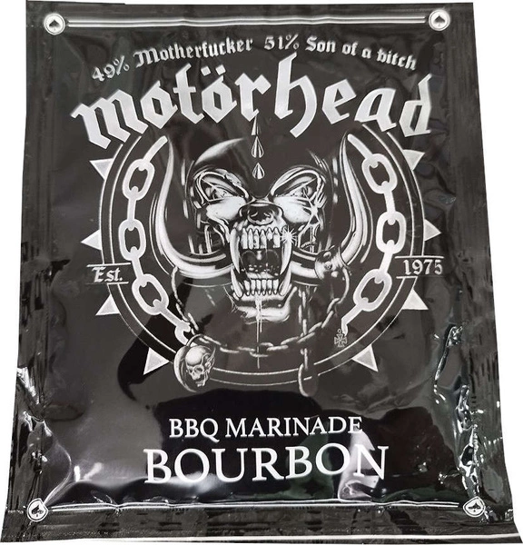 BBQ Marinade Bourbon Motorhead to wyjątkowa marynata do grillowania, która łączy w sobie intensywny smak bourbonu, klasyczny sos BBQ oraz rockowy zacięcie zespołu Motorhead. Ten produkt oferuje niepowtarzalne doznania smakowe, które z pewnością zadowolą miłośników wykwintnych smaków, grillowania i rockowej muzyki.